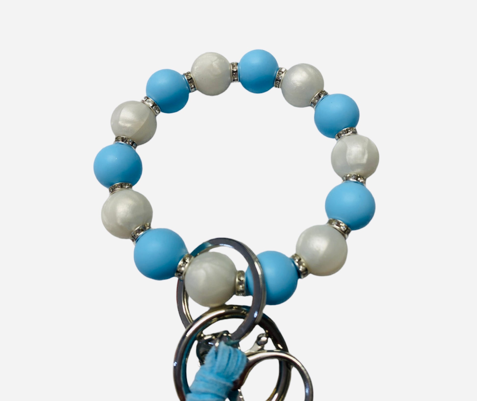 Blue Silicone Bead Safety and Accessory Keychain Set