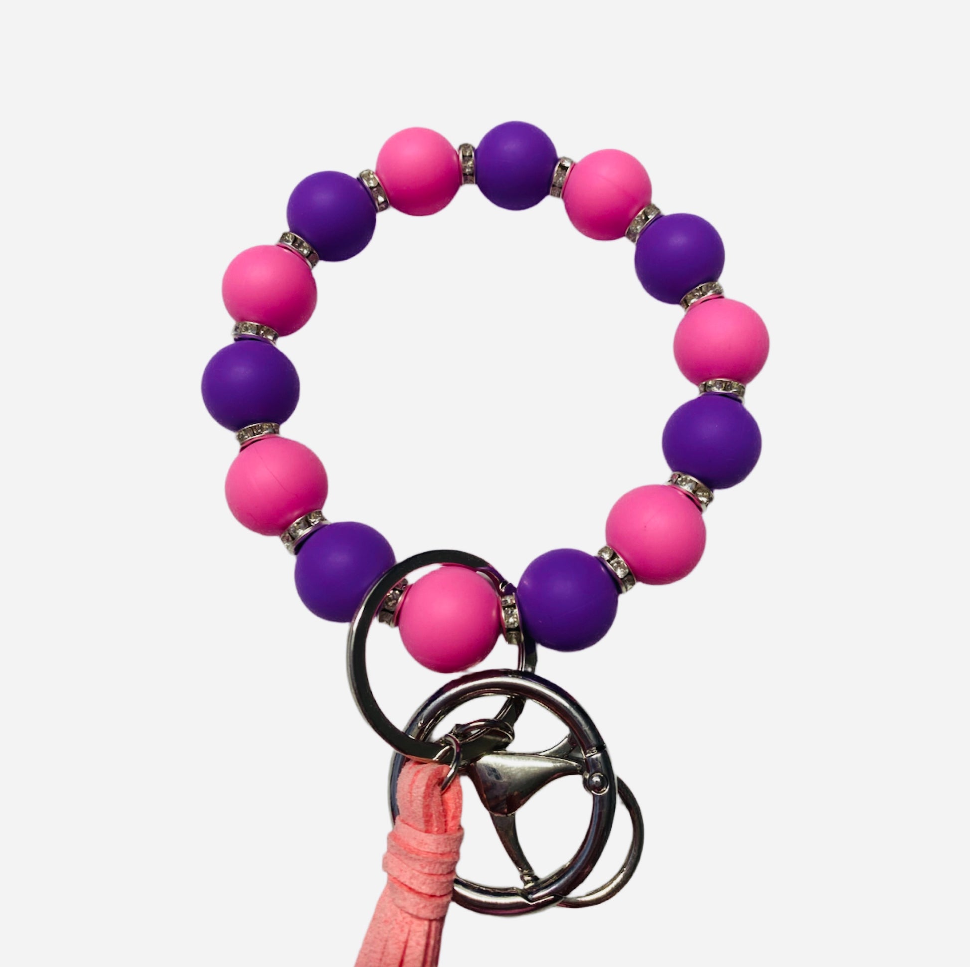 Purple and Pink Silicone Bead Safety and Accessory Keychain Set